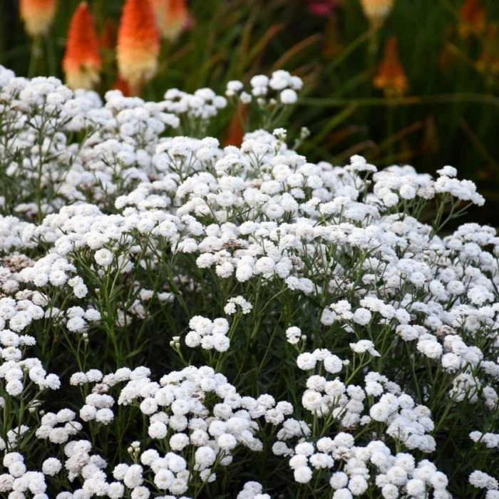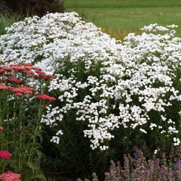 Bertramsgarbe Achillea Peter Cottontail wird dank seines schnellen Wachstums schon bald ein duftig weißes Blütenmeer in deinen Garten zaubern. Der unermüdliche Dauerblüher bringt von Frühsommer bis Herbstbeginn feine, gefüllte Blütenköpfe über schmalen, gezähnten, tiefgrünen Blättern hervor.