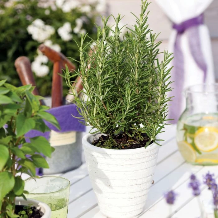Auch als Kübelpflanze sehr dekorativ. Dunkelgrüne Belaubung, blaue Blüte und ein aufrechter Wuchs zeichnen diese Nutzpflanze aus.