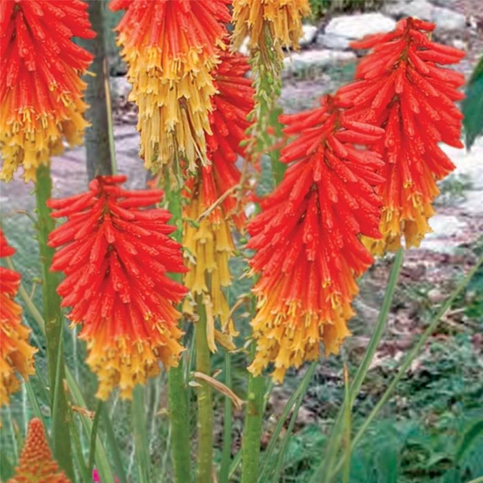 Die Fackellilie gehört zu den auffälligsten Stauden im Beet oder Kübel. Die Sorte hat besonders schöne, leuchtend rotorange Blütenkerzen. Lange Blütezeit bis in den Herbst hinein – auch gut haltbar als Schnitt in der Vase. Die Pflanzen vertragen auch etwas feuchtere Standorte, z.B. am Teichrand.
