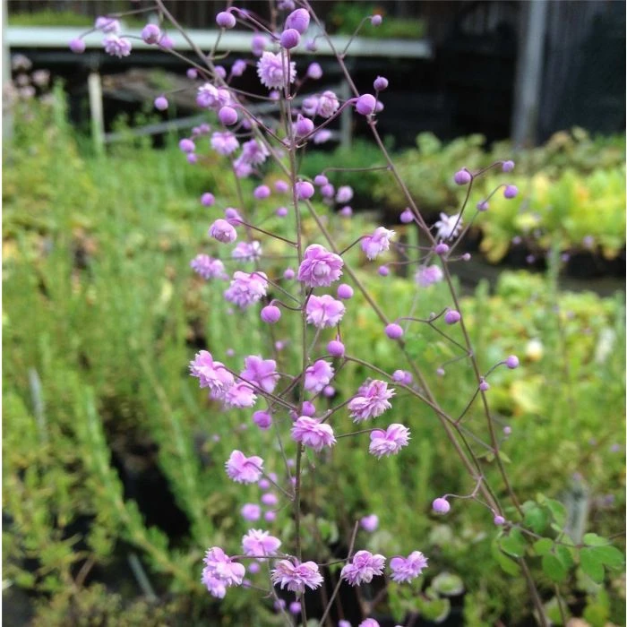 Die Wiesenraute ist eine prächtige Solitärstaude für halbschattige Plätze. Die Blüten wachsen doldenförmig mit unzähligen gefüllten Einzelblüten. Auch als Schnittpflanze geeignet.
