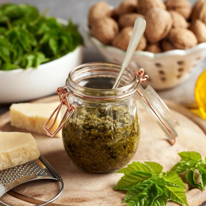 - Das Giersch Pesto kann sofort verwendet werden oder in einem luftdichten Behälter im Kühlschrank aufbewahrt werden.