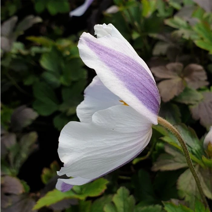 Neuheit! Wild Swan stammt aus einer Serie von Anemonen, die eine zweifarbige Blütenpracht zeigen – die Blüte ist weiß, mit einer andersfarbigen Blütenunterseite. Die Blütenunterseite von Wild Swan ist blau-violett gefärbt. Die Spätsommer-Anemone liebt lichte, schattige Plätze und bevorzugen einen lockeren, humosen Boden. Bei immer ausreichender Feuchtigkeit gedeiht sie auch an sonnigeren Plätze. Buschiger Wuchs. Die Blüten eignen sich auch als Schnitt für die Vase. Lange Blütezeit.