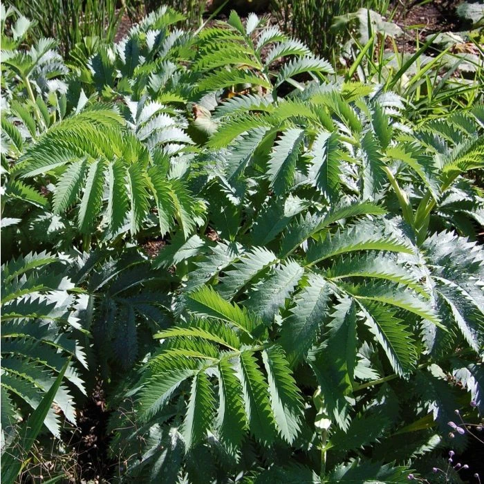 - Der Honigstrauch kann eine Höhe von bis zu 2 Metern erreichen und hat große, gefiederte Blätter, die eine silbergraue Farbe haben.