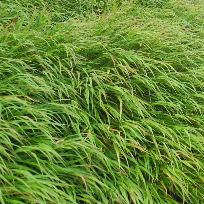 Hakonechloa macra, auch als Japanwaldgras oder Japanisches Waldgras bekannt, stammt ursprünglich aus den bewaldeten Gebieten Japans. Es gehört zur Familie der Süßgräser und zeichnet sich durch seine zierlichen, bogig überhängenden Halme aus. Diese Halme können eine Höhe von etwa 30-45 cm erreichen und bilden dichte Horste, die eine attraktive Bodenbedeckung bilden. Die Blätter des Japanischen Berggrases sind schmal und linealisch, und je nach Sorte können sie eine leuchtend grüne oder goldene Farbe haben. Im Herbst nehmen die Blätter oft eine wunderschöne kupferrote Färbung an, was zu einem zusätzlichen visuellen Reiz führt.