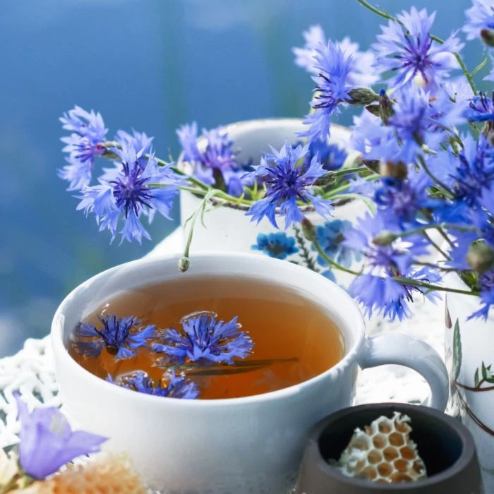 - Tee: Getrocknete Kornblumenblüten können zu einem beruhigenden Tee aufgebrüht werden. Dieser Tee wird oft zur Entspannung und zur Förderung des allgemeinen Wohlbefindens getrunken.