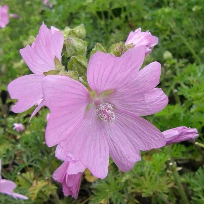 Die Moschus-Malve (Malva moschata), auch bekannt als Moschusmalve oder Malva moschata in rosa, ist eine Pflanzenart aus der Familie der Malvengewächse. Sie ist für ihre zarten rosa Blüten und ihren angenehmen Duft bekannt.