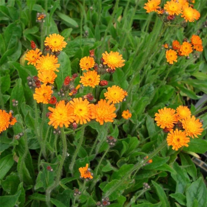 Das Orangerote Habichtskraut, lateinisch Hiracium aurantiacum, ist eine auch als einheimische Wildstaude vorkommende Pflanze. Es wird in manchen Regionen auch als Gebirgskraut bezeichnet und kommt auf mageren Wiesen und Weiden vor. Auch an Wegrändern ist sie häufig zu finden. Es handelt sich hier um einen echten Überlebenskünstler. Die kleine Staude ist absolut frosthart und stellt kaum Ansprüche an Pflege oder den Boden. In der Natur gedeiht es häufig auf durchlässigen, leicht sauren, kargen oder auch steinigen Böden. Besonders auffällig ist die leuchtende Blütenkraft der doldig angeordneten kleinen dicht gefüllten Blütenköpfe. Die Färbung reicht vom gelborange bis orangerot und ist vor allem durch diese Leuchtkraft ein absoluter Blickfang.