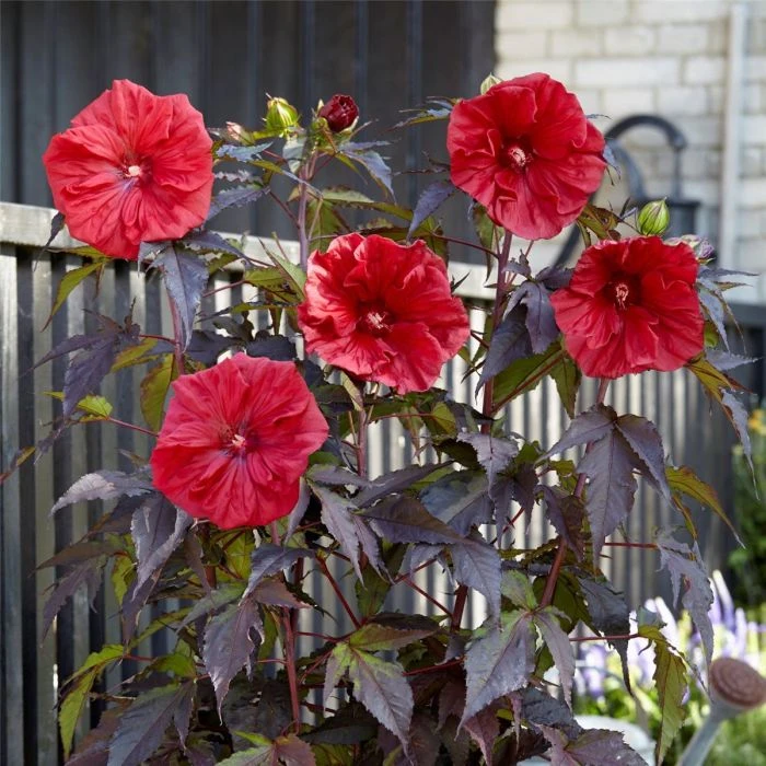 Der reichblühende Garten-Eibisch Carousel® Red Wine hat dunkelrote, riesige Blüten (ca. 18 cm Durchmesser) und eine dunkelrote, tief eingeschnittene Belaubung. Die pflegeleichte Staude hat einen buschigen Wuchs und eine guten Winterhärte. Der Dauerblüher setzt farbintensive Akzente im Kübel auf Terrasse oder Balkon oder auch im Beet, ideal für feuchte Standorte. An normalen Standorten sollte die Pflanze häufiger gegossen werden.