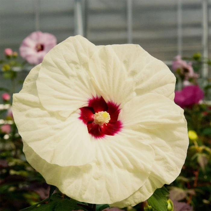 Der Riesen-Hibiskus (Hibiscus moscheutos) SUMMERIFIC French Vanilla, auch bekannt als Sumpf-Hibiskus oder Südstaaten-Rosenbusch, ist eine beeindruckende und prächtige Staude, die für ihre auffälligen Blüten und ihre robuste Natur geschätzt wird.