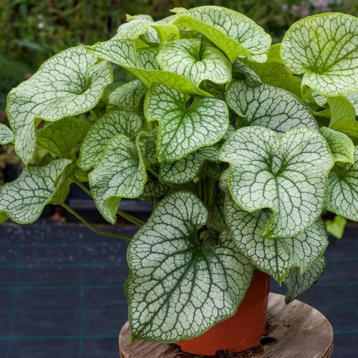 Das silbrige Kaukasusvergissmeinnicht (Brunnera macrophylla) Alexander’s Great ist eine mehrjährige Pflanze, die zur Familie der Raublattgewächse gehört. Sie stammt aus dem Kaukasus und ist für ihre attraktiven silbrig-grünen Blätter und die blauen Blüten bekannt. Die Pflanze wächst in aufrechten Büscheln und erreicht eine Höhe von etwa 30-45 cm.