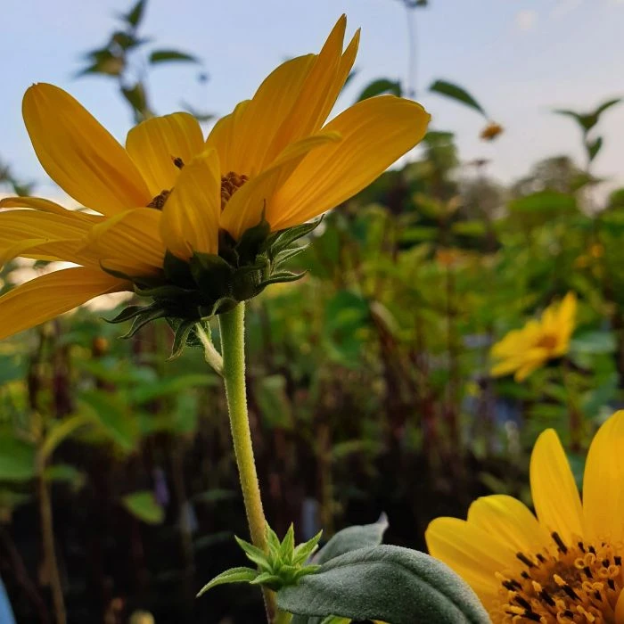 - Die Stauden-Sonnenblume wird auch als Suncatcher bezeichnet, da sie das Sonnenlicht einfängt und reflektiert.
