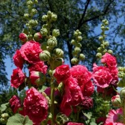 Die Stockrose Chaters Scarlet blüht rot gefüllt und ist ein Blickfang für jeden Staudengarten. Sie wächst aufrecht und horstbildend und ist in jedem Bauerngarten gern gesehen. Stockrosen sind sehr gut pflanzbar in Einzelstellung, z.B. an Hausmauern etc. Für einen windgeschützten Standort sind die Stauden dankbar, sie lieben die Sonne. Die Blüten wachsen großblütig von Mai – Oktober an langen Blütenrispen und bilden einen Durchmesser von 8-10 cm. Stockrosen sind das ganze Jahr über pflanzbar und zudem winterhart.