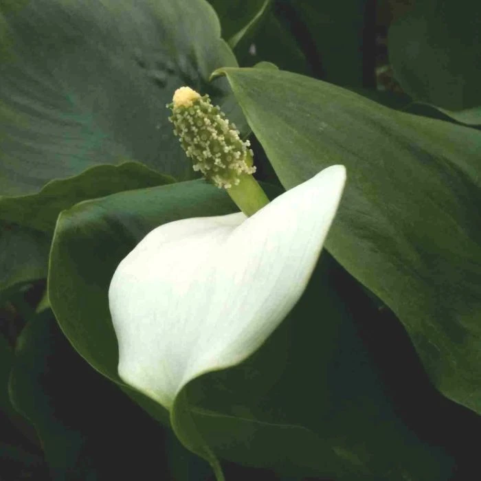 - Die Sumpfcalla hat dicke, fleischige Blätter, die als Wasserspeicher dienen und ihr ermöglichen, längere Trockenperioden zu überstehen.
